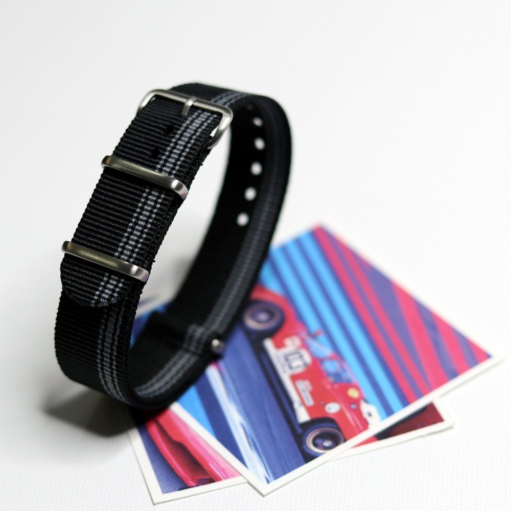 Is your wristwatch at home banking turns on your motorcycle? Black with sharp Grey Racing Strap made from durable nylon. Give your watch a new look and go out for a ride. Easy to change out, and easy to size! Shipping is FREE in the Continental US.