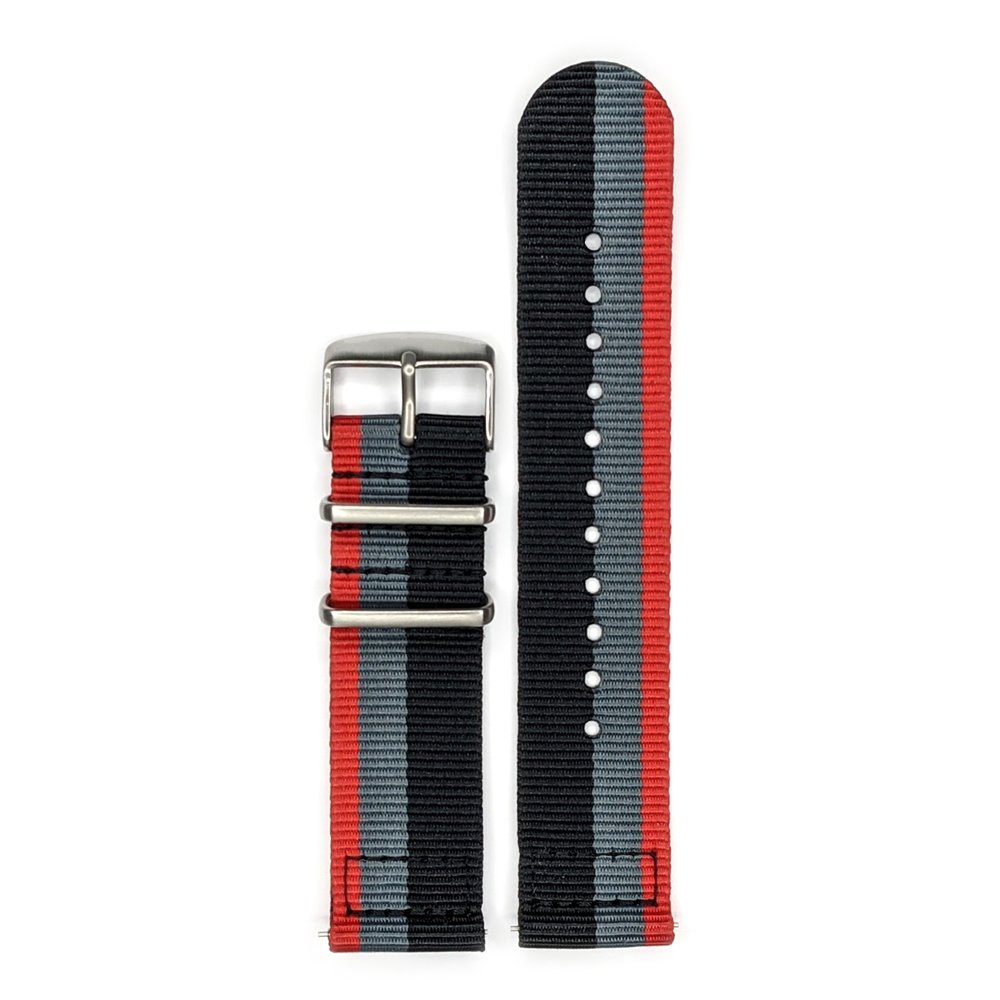 Is your smartwatch ready to rally? Black Grey and Red Racing Strap made from durable nylon. Give your watch a new look, and celebrate the golden age of Rally! Easy to change out, and easy to size! Shipping is FREE in the US.