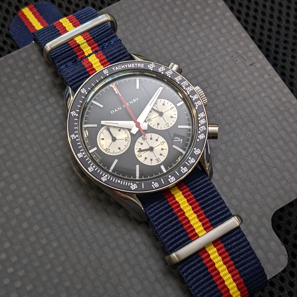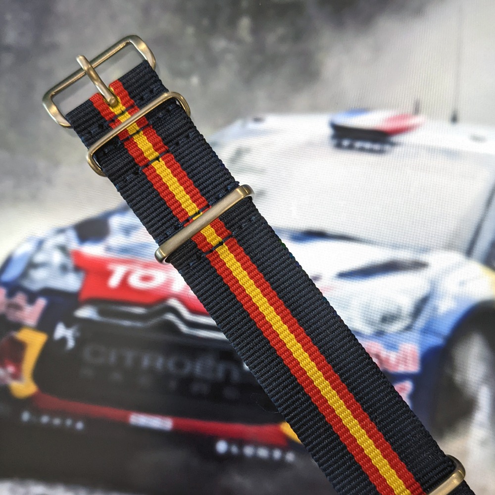 BOX BOX BOX! Navy Blue, Red, and Yellow Racing Strap made from durable nylon. Great for jumping into the pool after a season win! Easy to change out, and easy to size! Shipping is FREE in the Continental US.